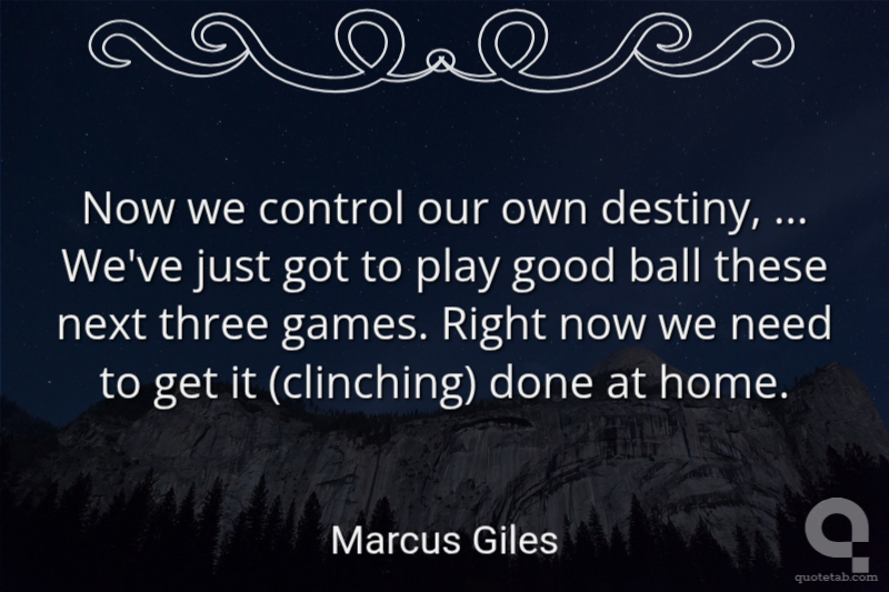 Now we control our own destiny, ... We've just got to play good ball these next three games. Right now we need to get it (clinching) done at home.