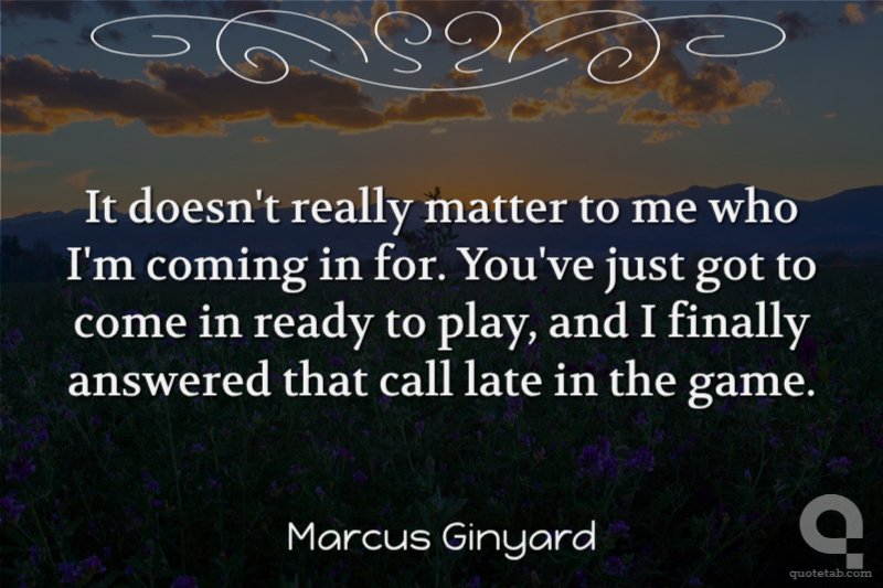 It doesn't really matter to me who I'm coming in for. You've just got to come in ready to play, and I finally answered that call late in the game.