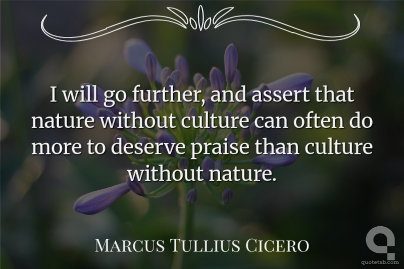 I will go further, and assert that nature without culture can often do more to deserve praise than culture without nature.