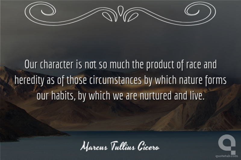 Our character is not so much the product of race and heredity as of those circumstances by which nature forms our habits, by which we are nurtured and live.