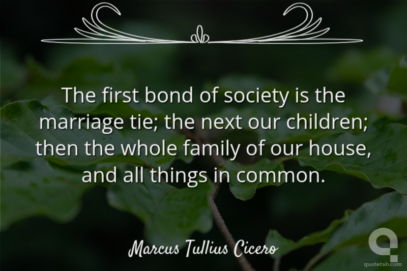The first bond of society is the marriage tie; the next our children; then the whole family of our house, and all things in common.