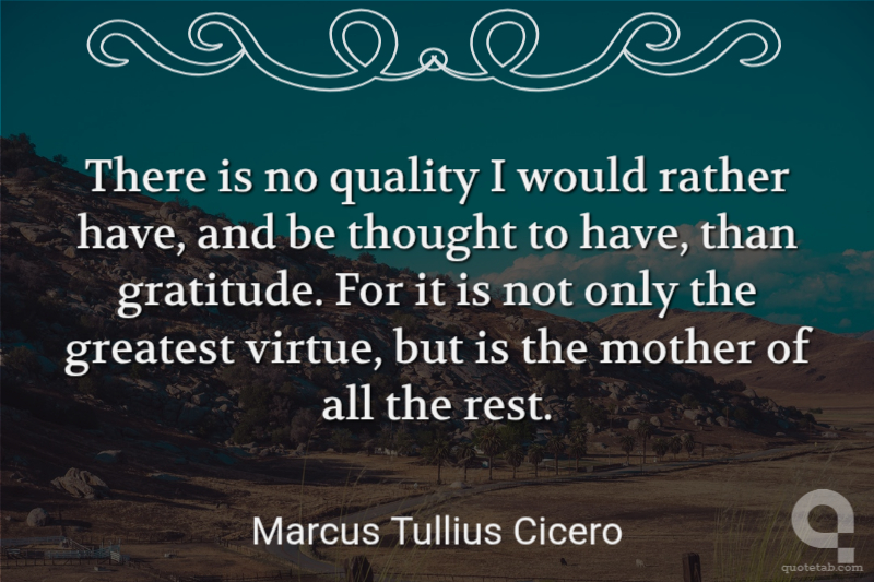 There is no quality I would rather have, and be thought to have, than gratitude. For it is not only the greatest virtue, but is the mother of all the rest.