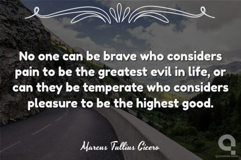 No one can be brave who considers pain to be the greatest evil in life, or can they be temperate who considers pleasure to be the highest good.