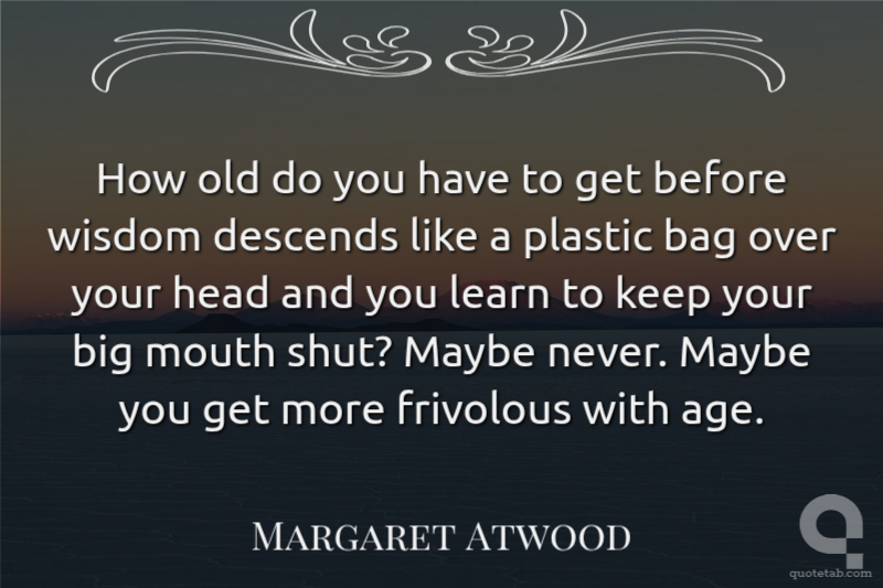 How old do you have to get before wisdom descends like a plastic bag over your head and you learn to keep your big mouth shut? Maybe never. Maybe you get more frivolous with age.