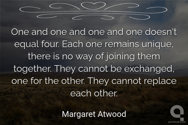 One and one and one and one doesn't equal four. Each one remains unique, there is no way of joining them together. They cannot be exchanged, one for the other. They cannot replace each other.