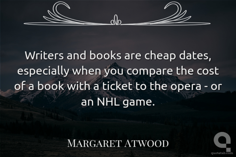 Writers and books are cheap dates, especially when you compare the cost of a book with a ticket to the opera - or an NHL game.