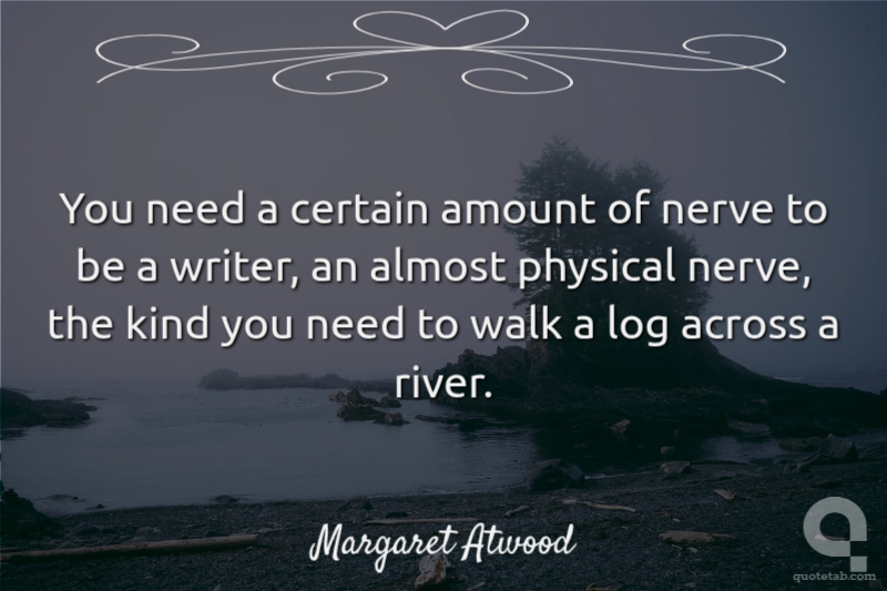 You need a certain amount of nerve to be a writer, an almost physical nerve, the kind you need to walk a log across a river.