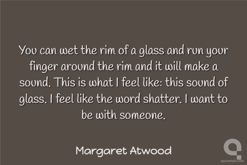 You can wet the rim of a glass and run your finger around the rim and it will make a sound. This is what I feel like: this sound of glass. I feel like the word shatter. I want to be with someone.