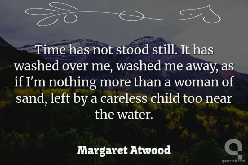 Time has not stood still. It has washed over me, washed me away, as if I'm nothing more than a woman of sand, left by a careless child too near the water.