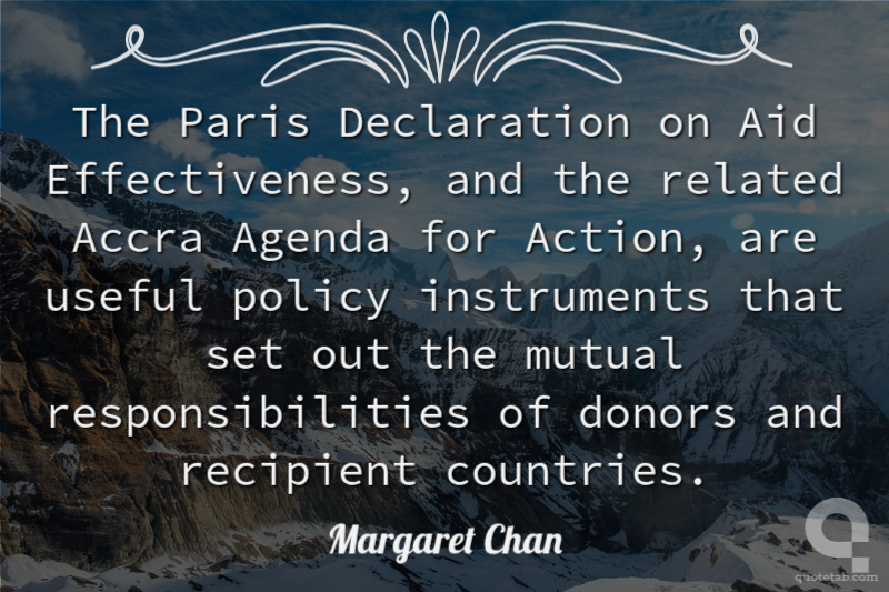 The Paris Declaration on Aid Effectiveness, and the related Accra Agenda for Action, are useful policy instruments that set out the mutual responsibilities of donors and recipient countries.