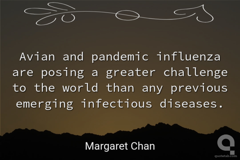 Avian and pandemic influenza are posing a greater challenge to the world than any previous emerging infectious diseases.