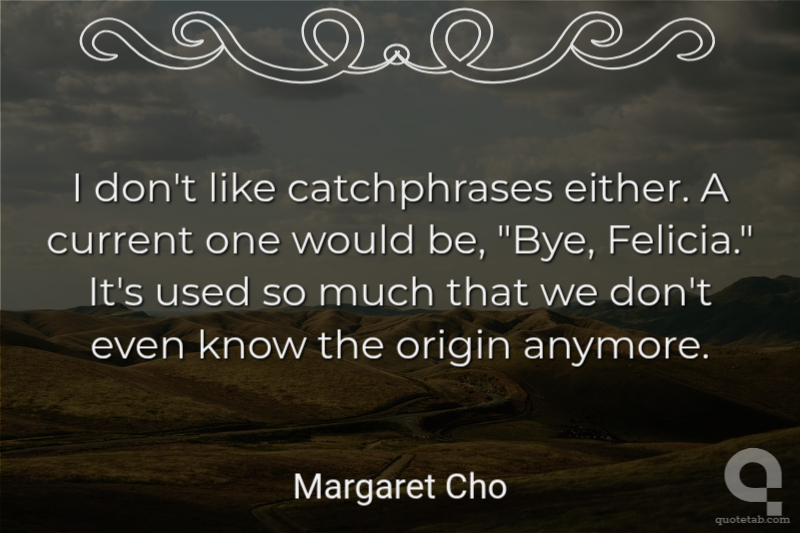 I don't like catchphrases either. A current one would be, "Bye, Felicia." It's used so much that we don't even know the origin anymore.