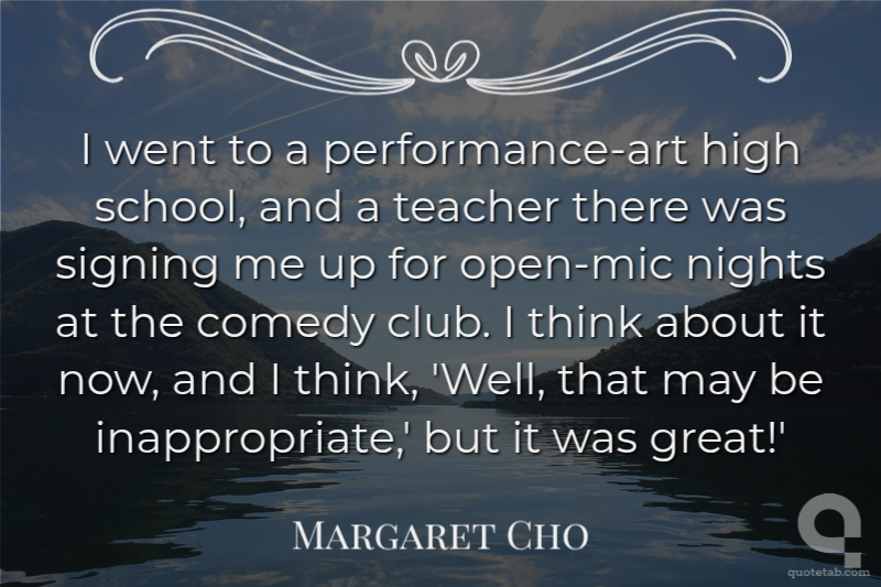 I went to a performance-art high school, and a teacher there was signing me up for open-mic nights at the comedy club. I think about it now, and I think, 'Well, that may be inappropriate,' but it was great!'