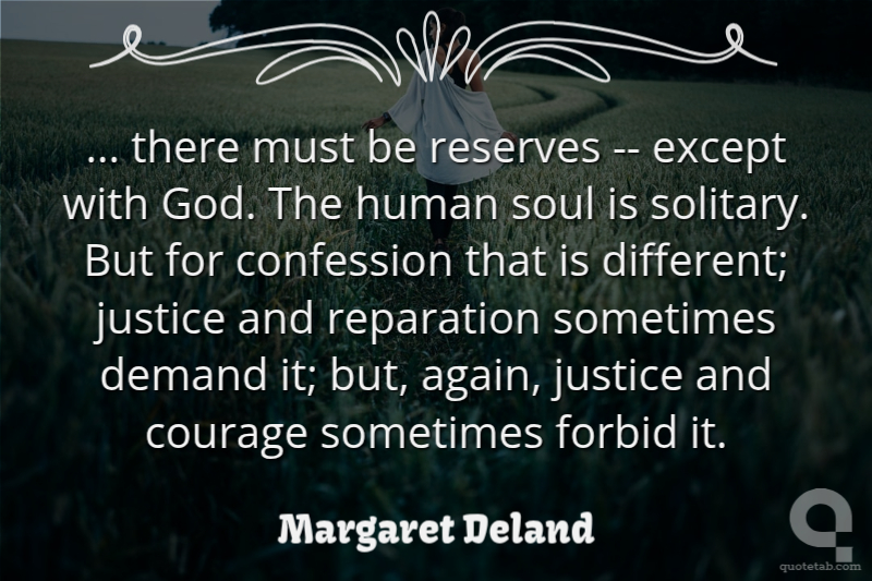 ... there must be reserves -- except with God. The human soul is solitary. But for confession that is different; justice and reparation sometimes demand it; but, again, justice and courage sometimes forbid it.