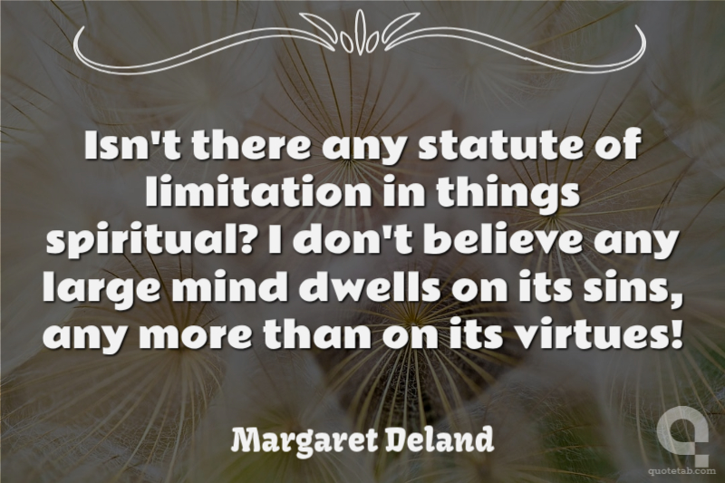 Isn't there any statute of limitation in things spiritual? I don't believe any large mind dwells on its sins, any more than on its virtues!