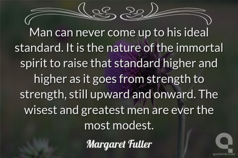 Man can never come up to his ideal standard. It is the nature of the immortal spirit to raise that standard higher and higher as it goes from strength to strength, still upward and onward. The wisest and greatest men are ever the most modest.