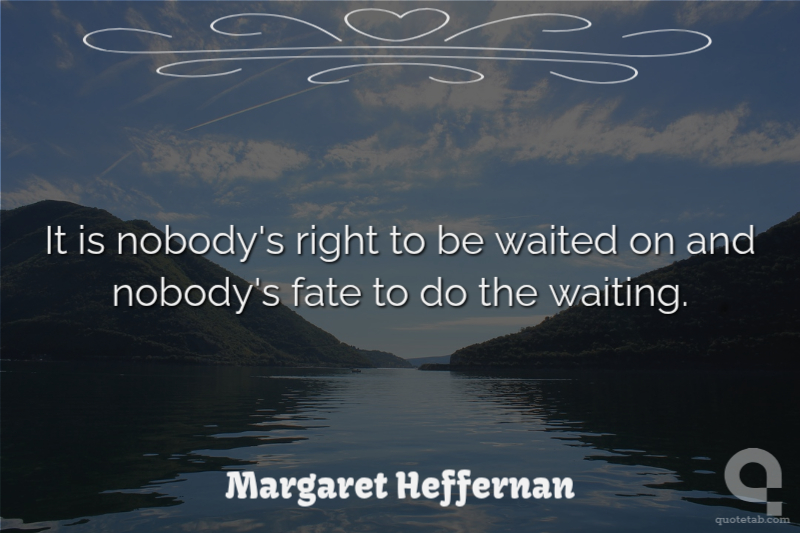 It is nobody's right to be waited on and nobody's fate to do the waiting.