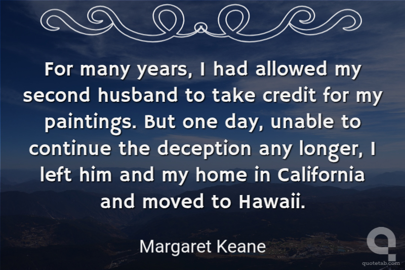 For many years, I had allowed my second husband to take credit for my paintings. But one day, unable to continue the deception any longer, I left him and my home in California and moved to Hawaii.