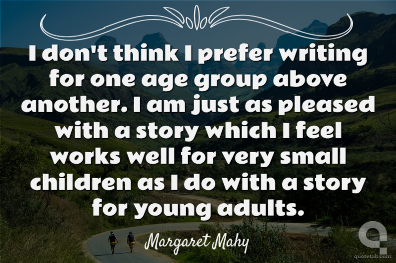 I don't think I prefer writing for one age group above another. I am just as pleased with a story which I feel works well for very small children as I do with a story for young adults.