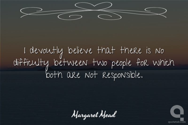 I devoutly believe that there is no difficulty between two people for which both are not responsible.