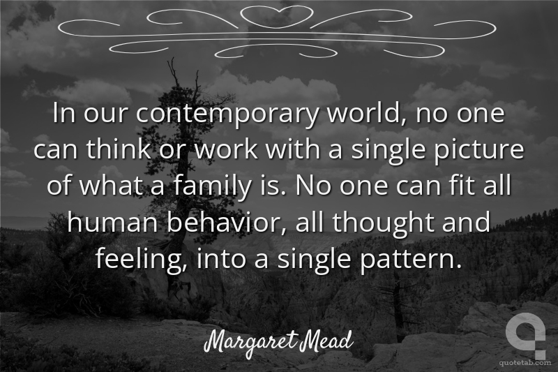 In our contemporary world, no one can think or work with a single picture of what a family is. No one can fit all human behavior, all thought and feeling, into a single pattern.