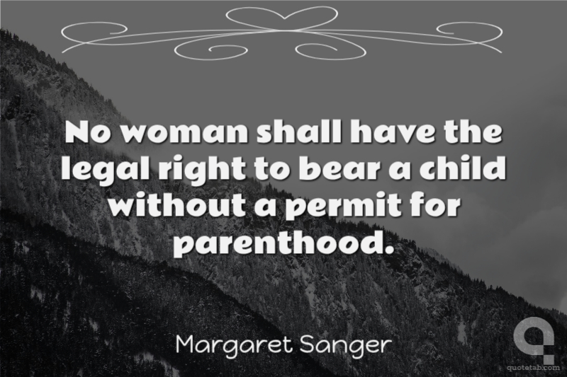No woman shall have the legal right to bear a child without a permit for parenthood.