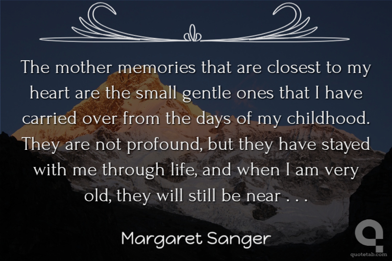 The mother memories that are closest to my heart are the small gentle ones that I have carried over from the days of my childhood. They are not profound, but they have stayed with me through life, and when I am very old, they will still be near . . .