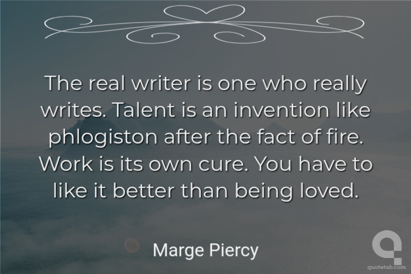 The real writer is one who really writes. Talent is an invention like phlogiston after the fact of fire. Work is its own cure. You have to like it better than being loved.