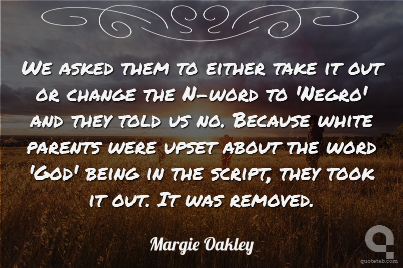 We asked them to either take it out or change the N-word to 'Negro' and they told us no. Because white parents were upset about the word 'God' being in the script, they took it out. It was removed.