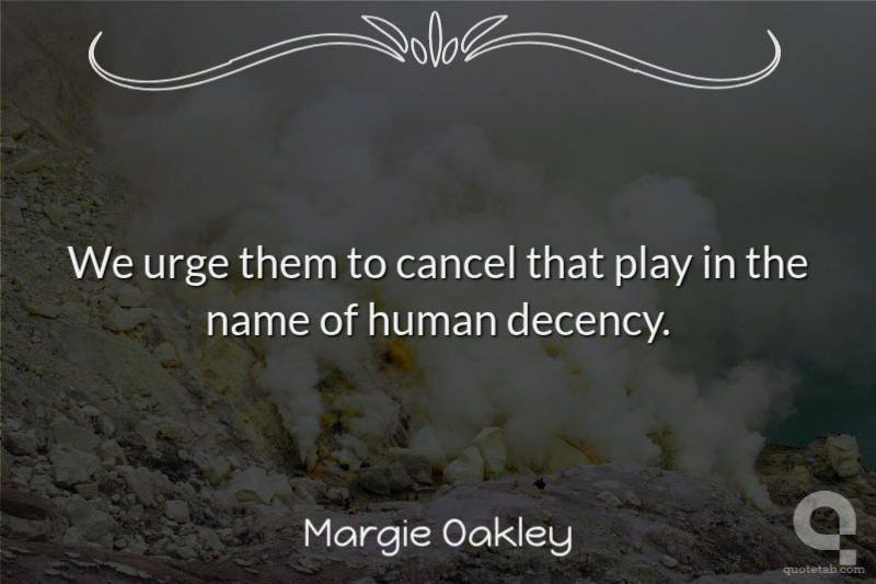 We urge them to cancel that play in the name of human decency.