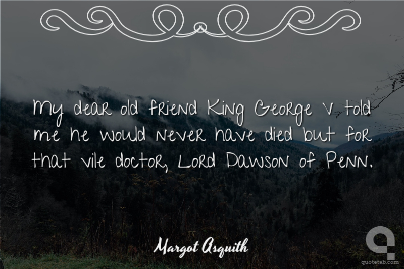 My dear old friend King George V told me he would never have died but for that vile doctor, Lord Dawson of Penn.