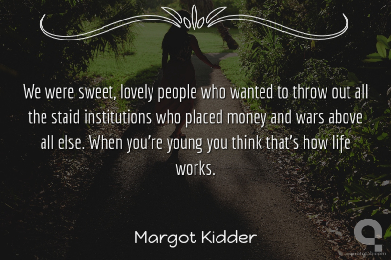 We were sweet, lovely people who wanted to throw out all the staid institutions who placed money and wars above all else. When you're young you think that's how life works.