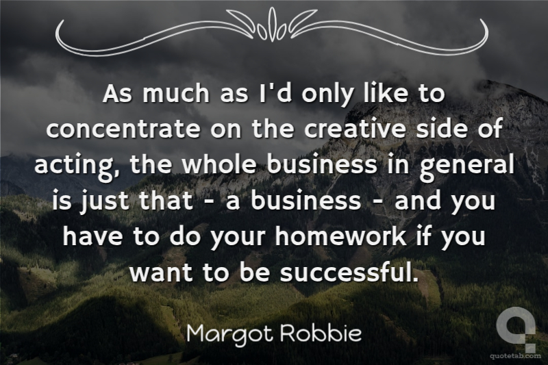 As much as I'd only like to concentrate on the creative side of acting, the whole business in general is just that - a business - and you have to do your homework if you want to be successful.