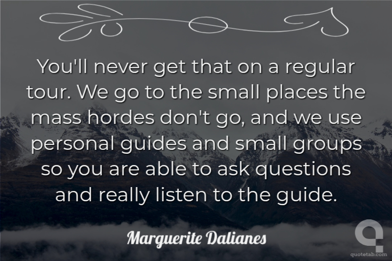 You'll never get that on a regular tour. We go to the small places the mass hordes don't go, and we use personal guides and small groups so you are able to ask questions and really listen to the guide.