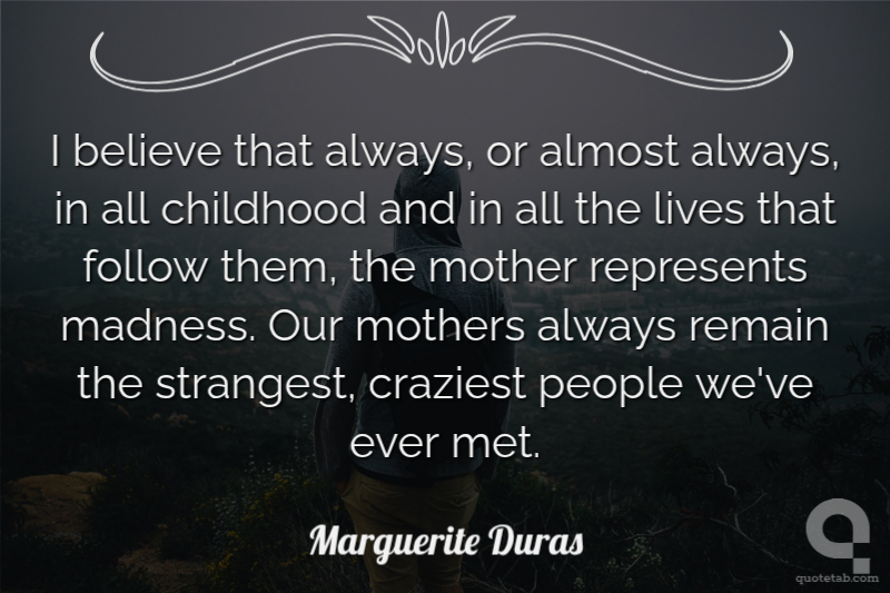 I believe that always, or almost always, in all childhood and in all the lives that follow them, the mother represents madness. Our mothers always remain the strangest, craziest people we've ever met.