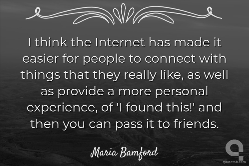 I think the Internet has made it easier for people to connect with things that they really like, as well as provide a more personal experience, of 'I found this!' and then you can pass it to friends.