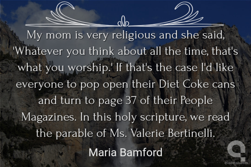 My mom is very religious and she said, 'Whatever you think about all the time, that's what you worship.' If that's the case I'd like everyone to pop open their Diet Coke cans and turn to page 37 of their People Magazines. In this holy scripture, we read the parable of Ms. Valerie Bertinelli.