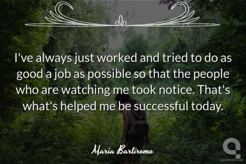 I've always just worked and tried to do as good a job as possible so that the people who are watching me took notice. That's what's helped me be successful today.