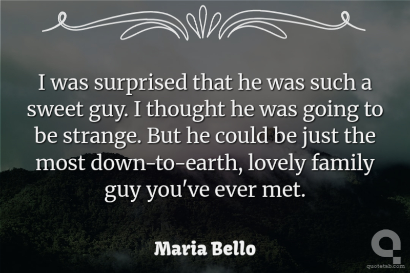 I was surprised that he was such a sweet guy. I thought he was going to be strange. But he could be just the most down-to-earth, lovely family guy you've ever met.
