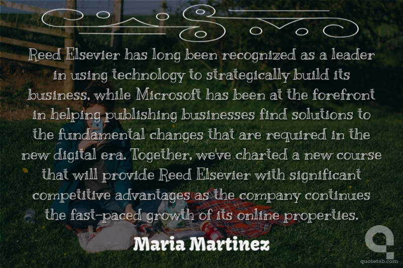 Reed Elsevier has long been recognized as a leader in using technology to strategically build its business, while Microsoft has been at the forefront in helping publishing businesses find solutions to the fundamental changes that are required in the new digital era. Together, we've charted a new course that will provide Reed Elsevier with significant competitive advantages as the company continues the fast-paced growth of its online properties.
