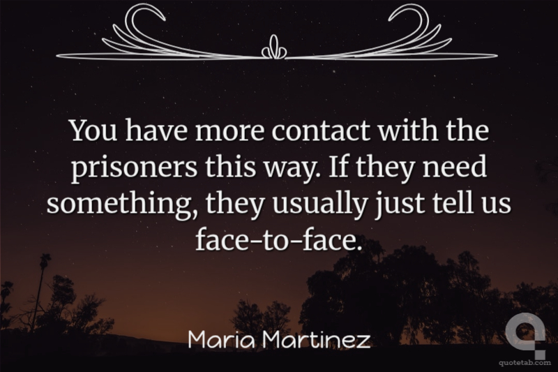 You have more contact with the prisoners this way. If they need something, they usually just tell us face-to-face.