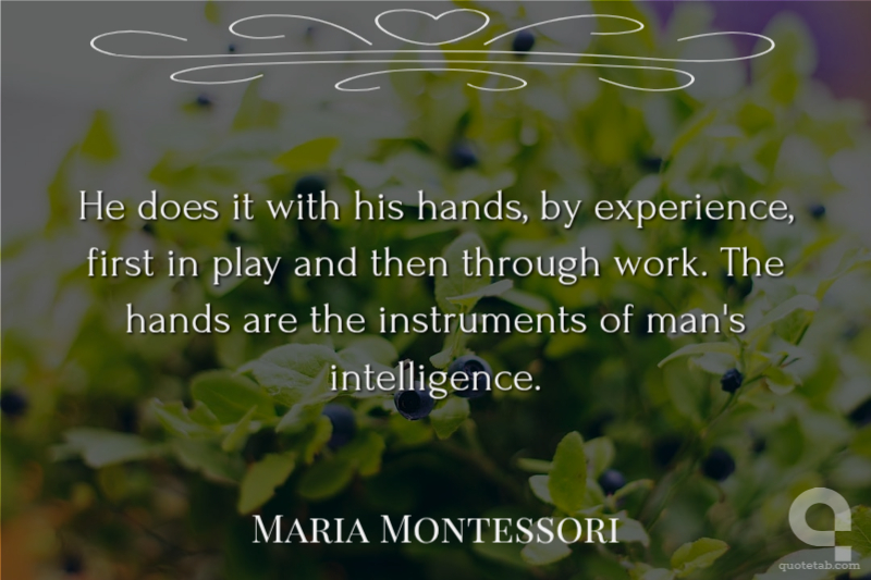 He does it with his hands, by experience, first in play and then through work. The hands are the instruments of man's intelligence.