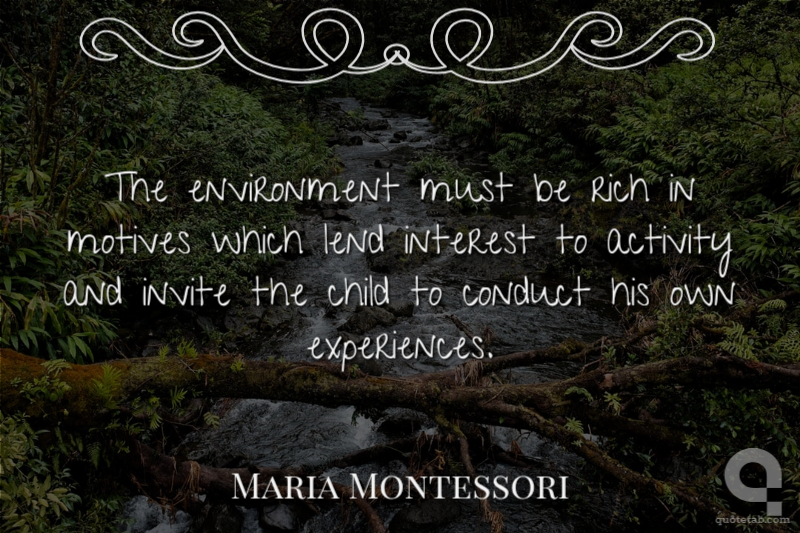 The environment must be rich in motives which lend interest to activity and invite the child to conduct his own experiences.