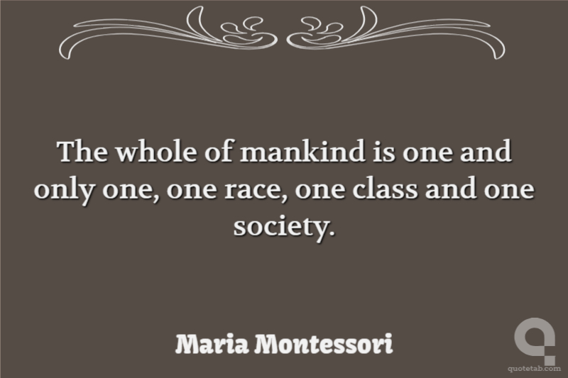 It is not enough for the teacher to love the child. She must first love and understand the universe. She must prepare herself, and truly work at it.