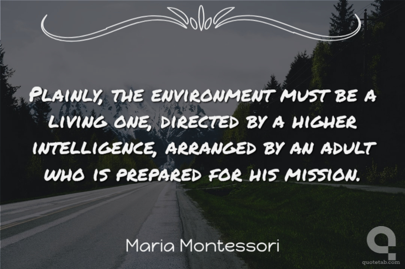 Plainly, the environment must be a living one, directed by a higher intelligence, arranged by an adult who is prepared for his mission.