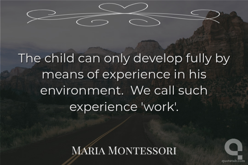 The child can only develop fully by means of experience in his environment. We call such experience 'work'.