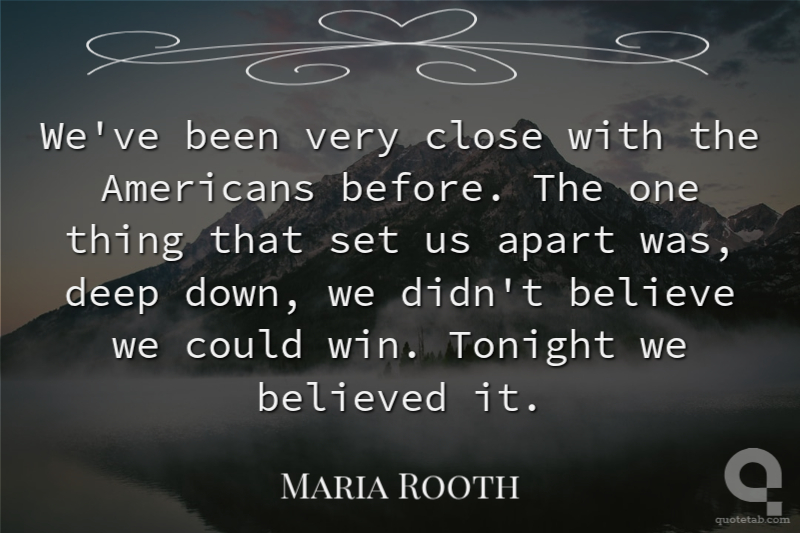 We've been very close with the Americans before. The one thing that set us apart was, deep down, we didn't believe we could win. Tonight we believed it.