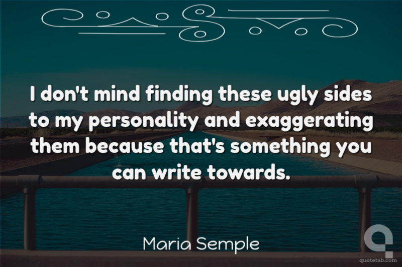 I don't mind finding these ugly sides to my personality and exaggerating them because that's something you can write towards.