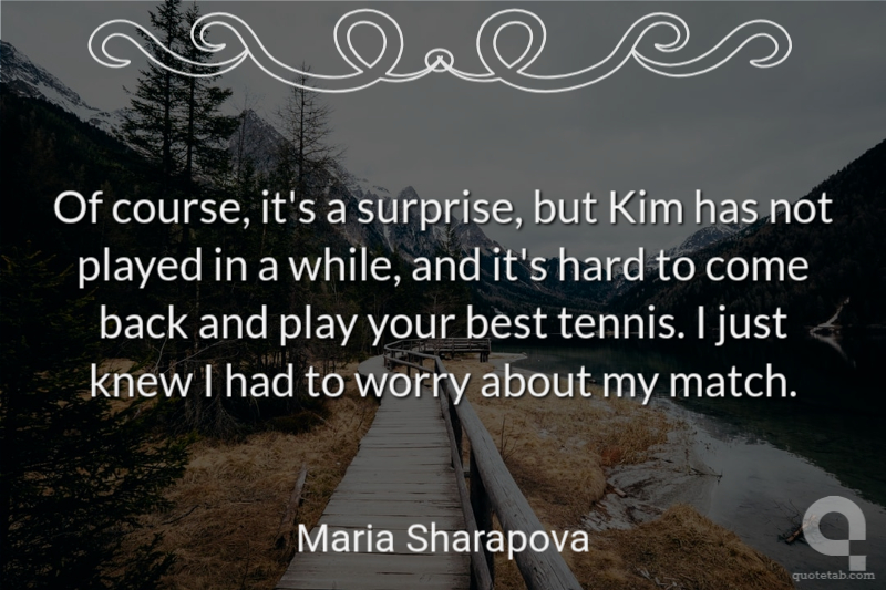 Of course, it's a surprise, but Kim has not played in a while, and it's hard to come back and play your best tennis. I just knew I had to worry about my match.
