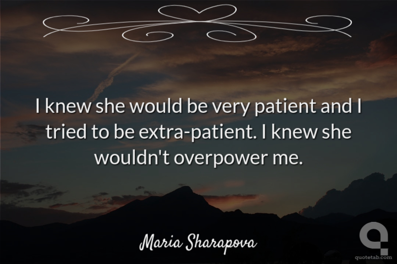 I knew she would be very patient and I tried to be extra-patient. I knew she wouldn't overpower me.